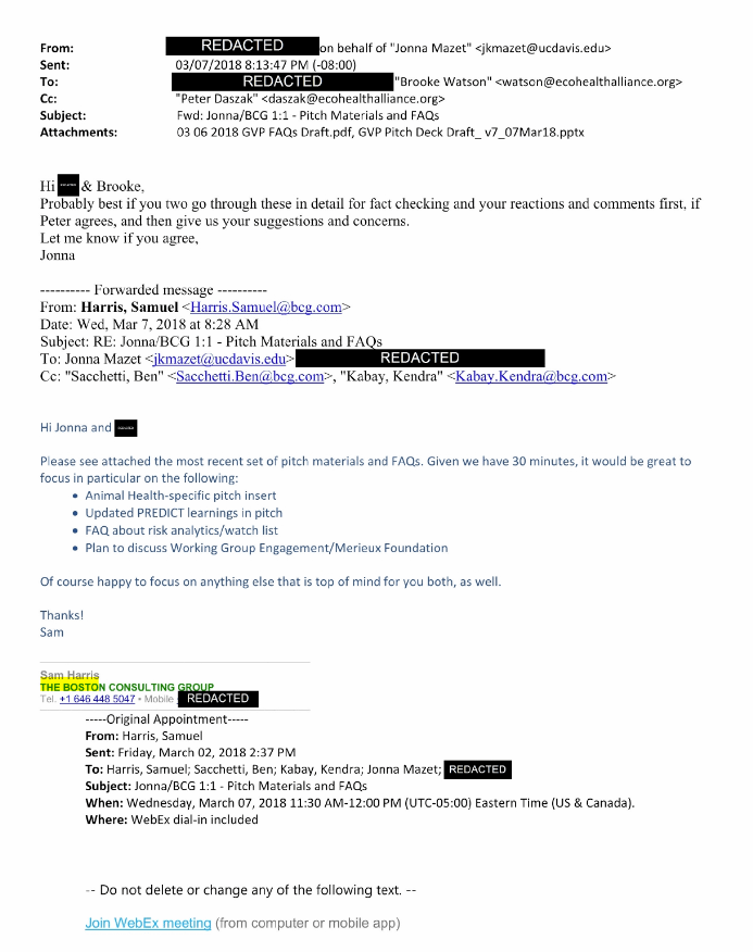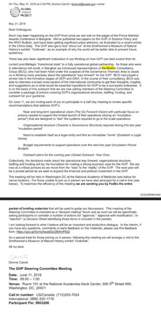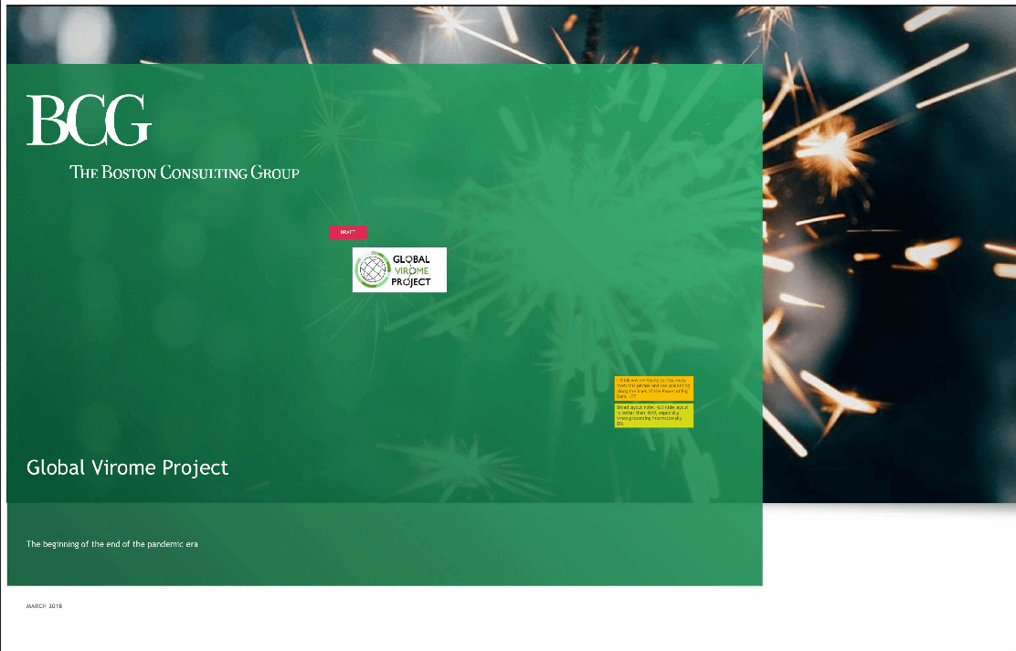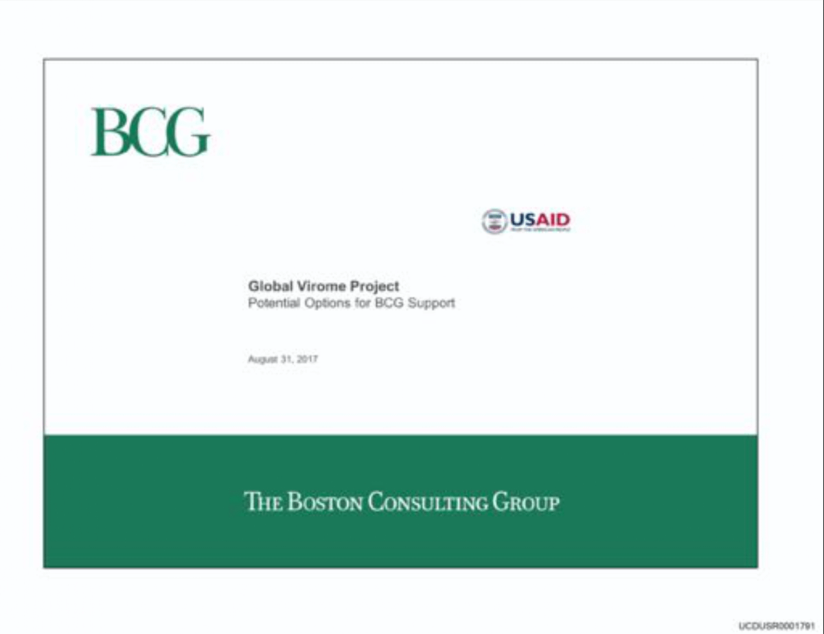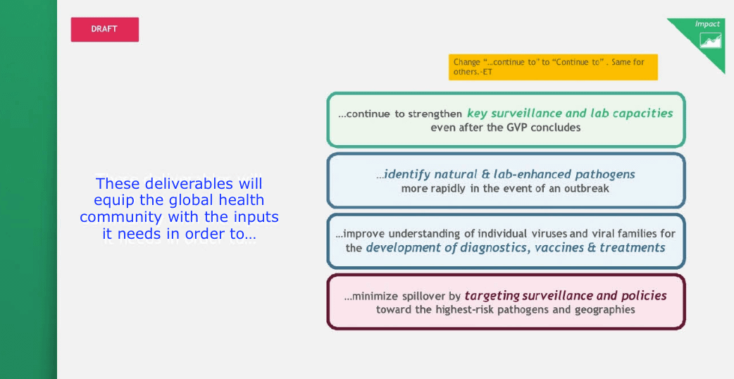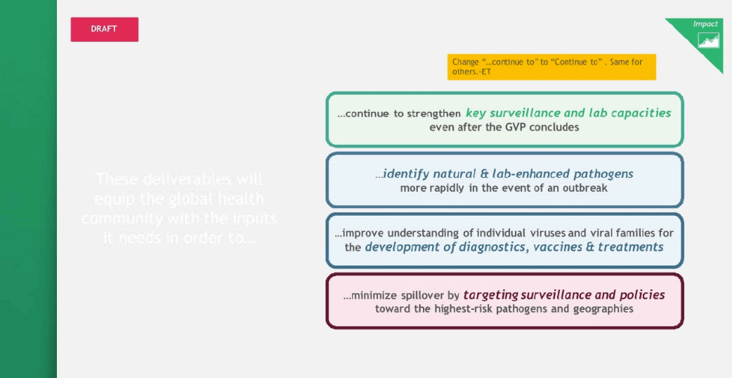 The GVP ability to help detect escapes/releases of lab-enhanced viruses is also mentioned in the draft Boston Consulting Group presentation of March 2018.