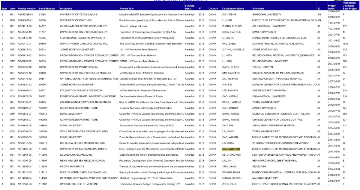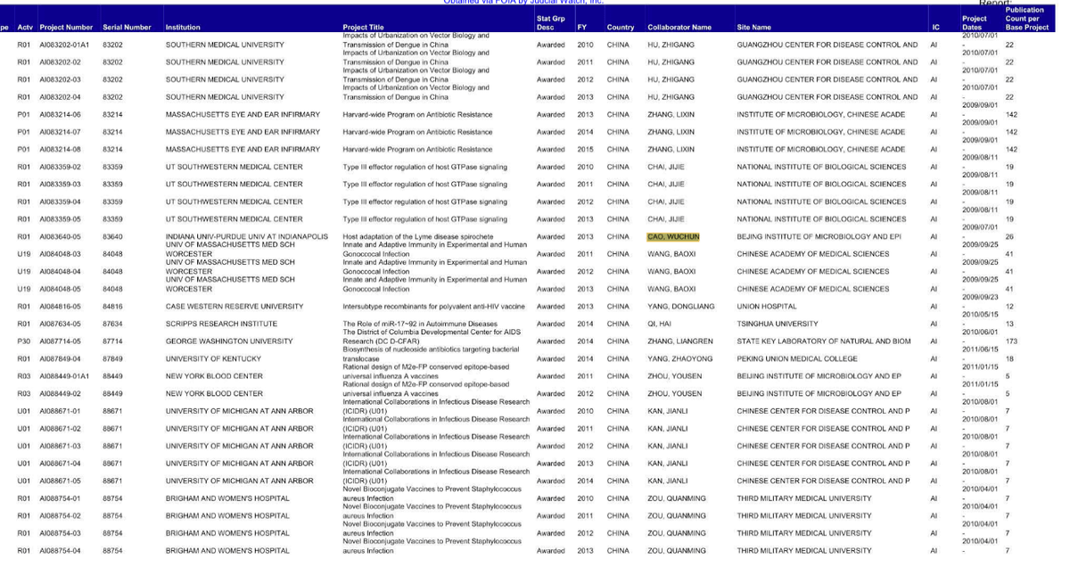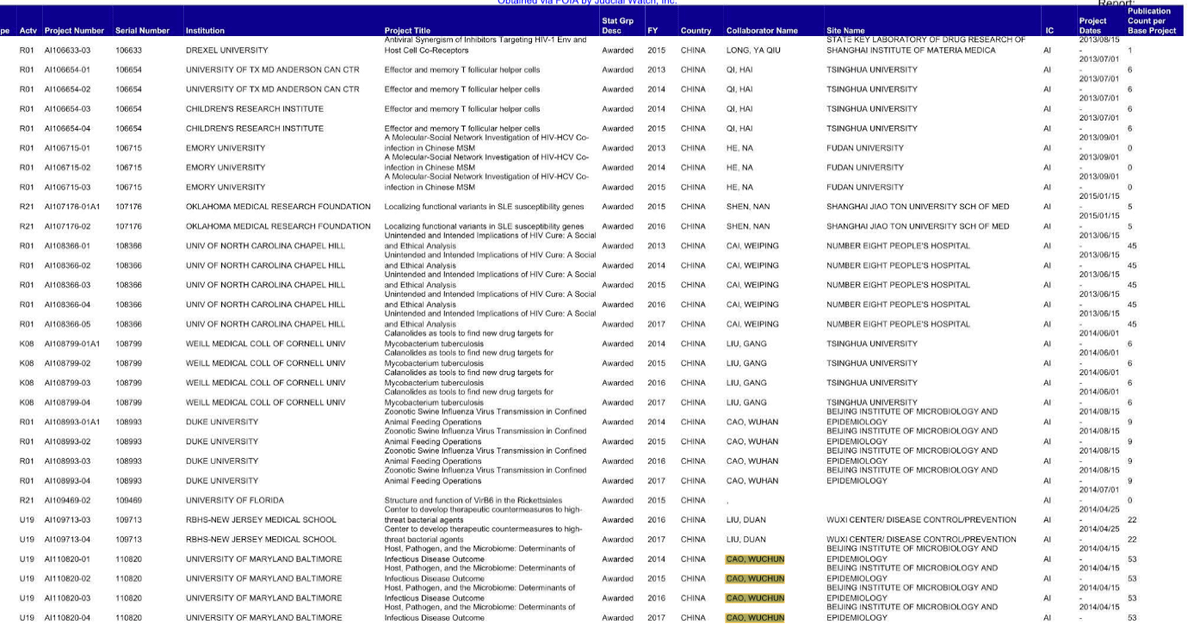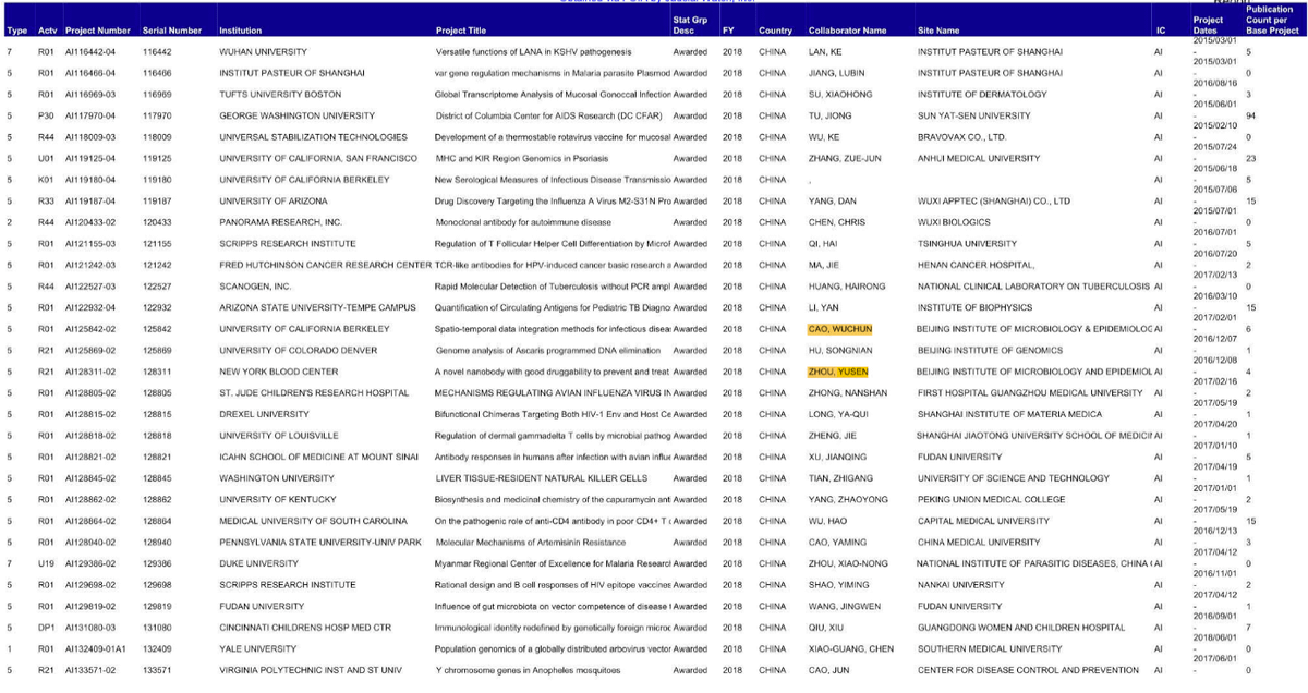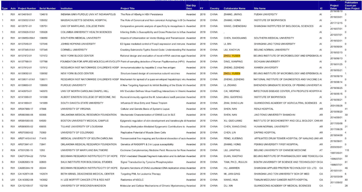 On this subject, I may point to a FOI'd list of all the NIH awards with Chinese collaborators, from 2010 to 2018. Here it is: