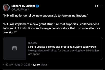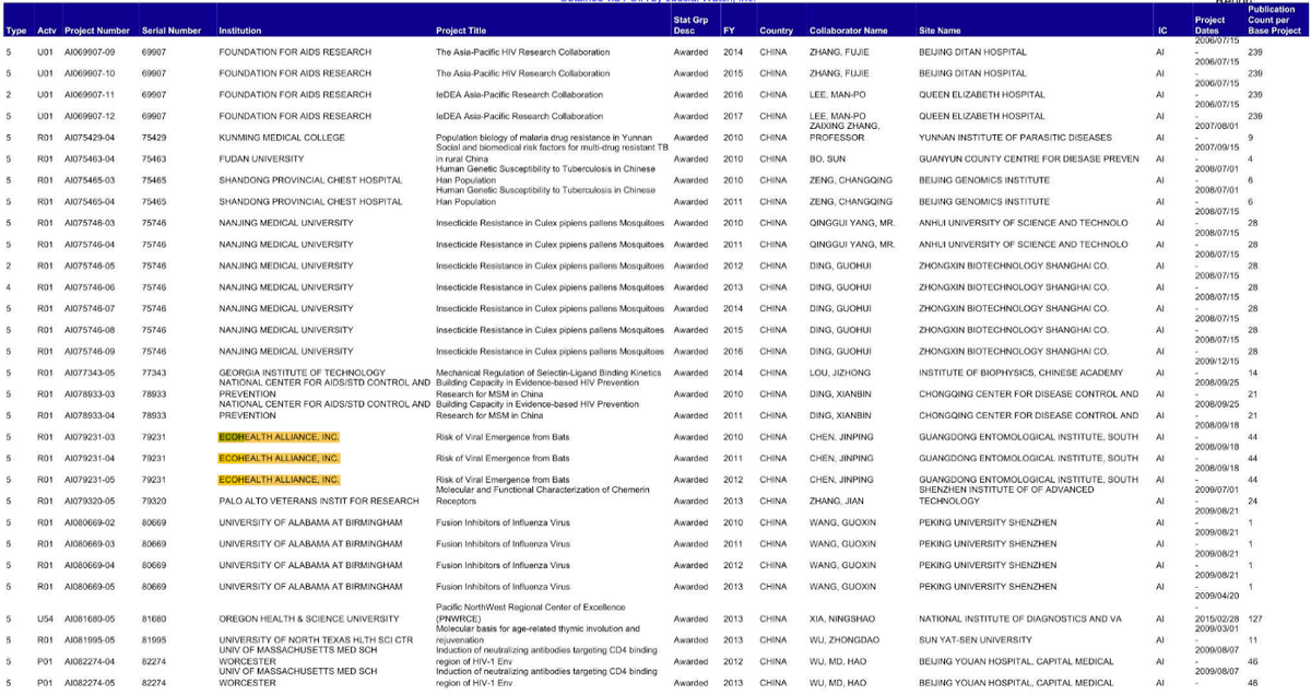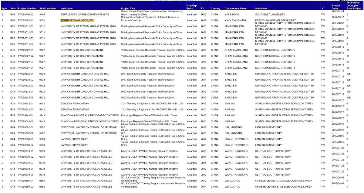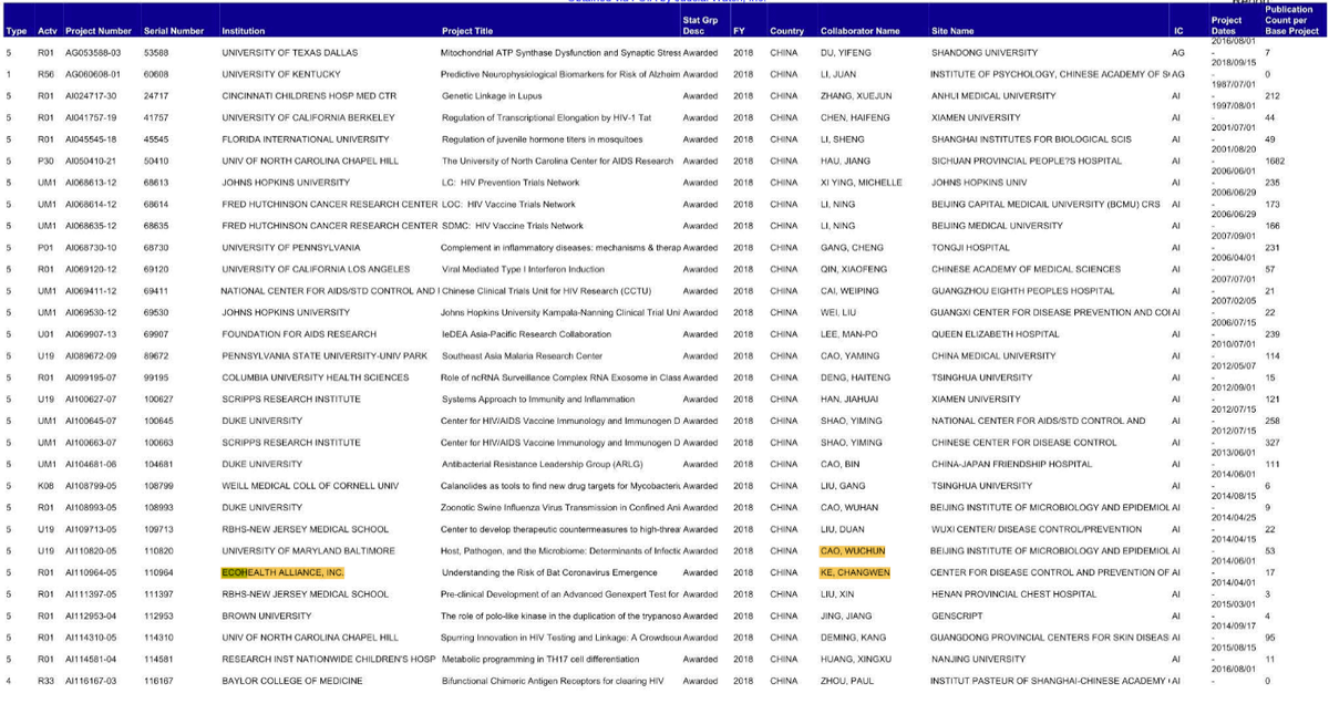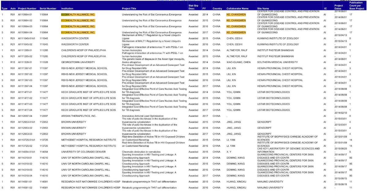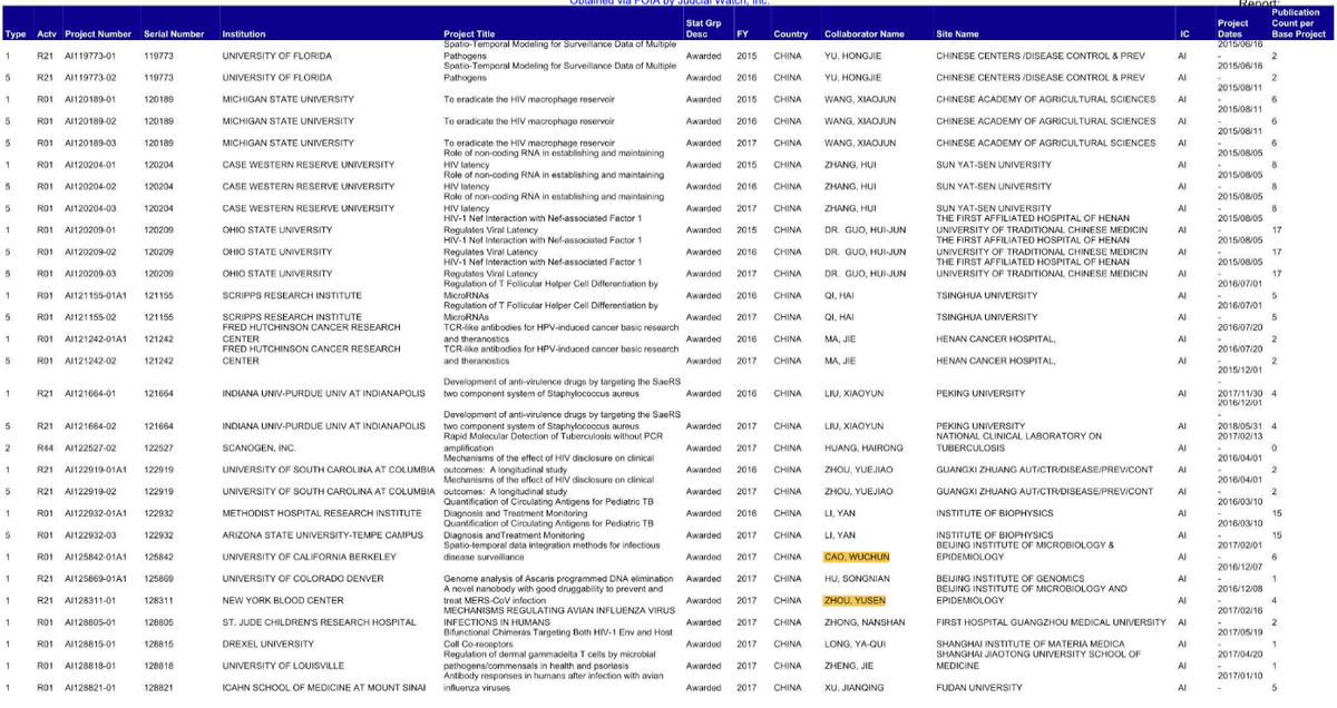 On this subject, I may point to a FOI'd list of all the NIH awards with Chinese collaborators, from 2010 to 2018. Here it is: