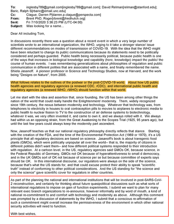 Here is an interesting email from some of the BSEG members (same FOIA): @DrJBhattacharya