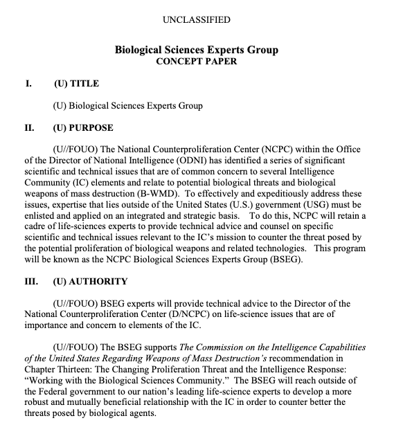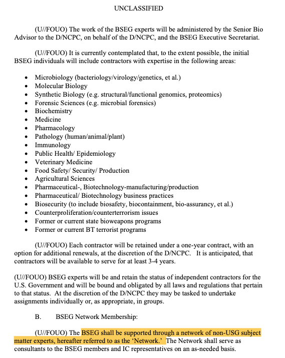 It takes 2 minutes to find the composition of the ODNI BSEG Group (as of Sep. 2020). Some fully expected names there: David Franz (also advisor to EHA), Inglesby, and obviously Baric. Relman too, and quite a few typical defense / biosecurity related people. @SenRandPaul