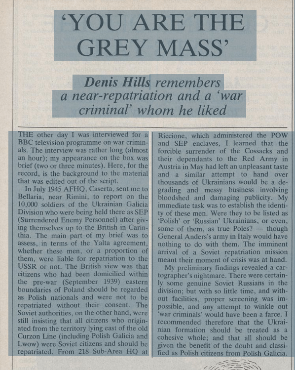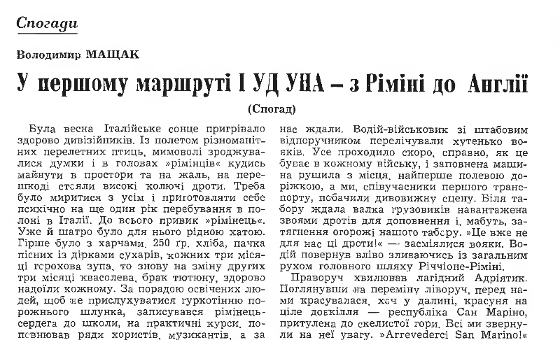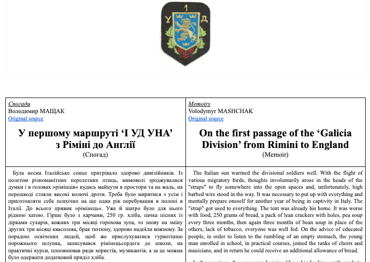 The Rimini camp held the members of the 1st Ukrainian Division (ex Waffen SS Division 'Galicia') who surrendered in 1945.