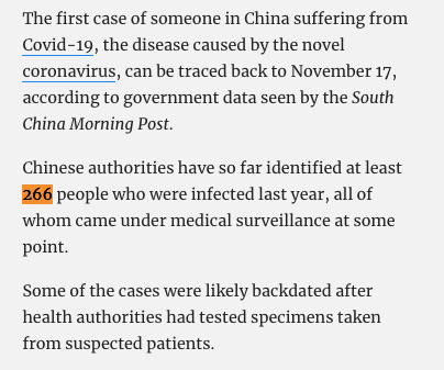 This nicely matches the South China Morning Post leak of 257 cases for Dec 2019 published 13 March 2020 (which also included an additional 9 November 2019 cases, either confirmed or diagnosed). 👉🏻 The SCMP leak is effectively validated. h/t @scmp_joma archive.ph/wip/FeOyq