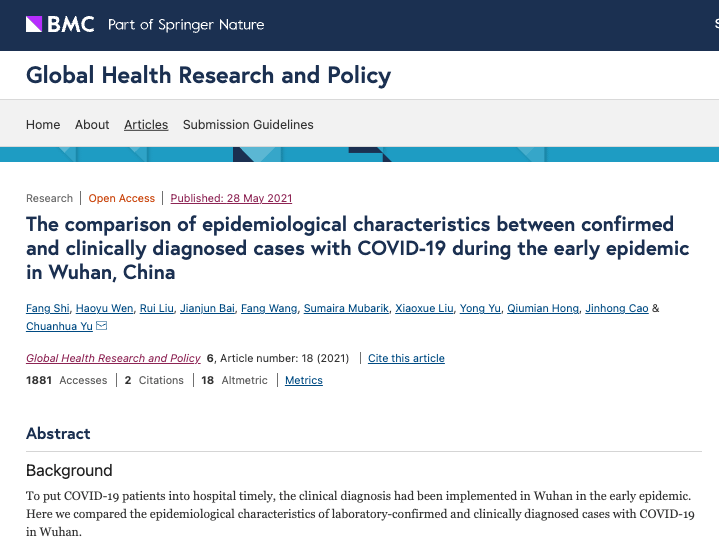 2nd team led by Chunhua Yu, prof. of Biostatistics at Wuhan Uni and specifically in charge of back-populating and cleaning the official database of SARS-CoV-2 cases with the CDC. He put out 3 papers with relevant 2019 case numbers. Main one here: ghrp.biomedcentral.com/articles/10.1186/s41256-021-00200-8