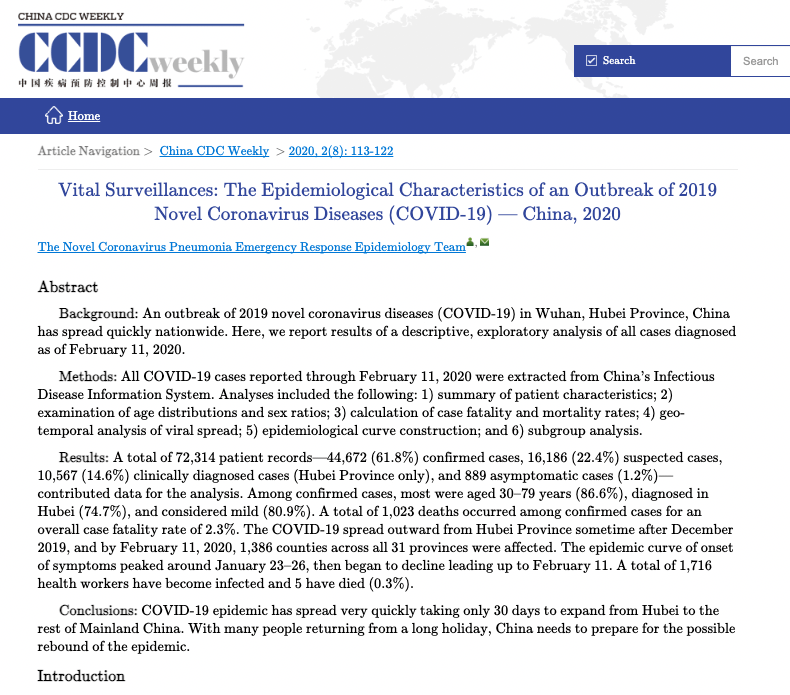 And they had to check for duplicate entries, partial records and other data issues. In the middle of a lockdown. After a few days of work, the CDC published its key update, on 17 Feb 2020, using their very preliminary data for 2019 as of 11 Feb. weekly.chinacdc.cn/en/article/doi/10.46234/ccdcw2020.032