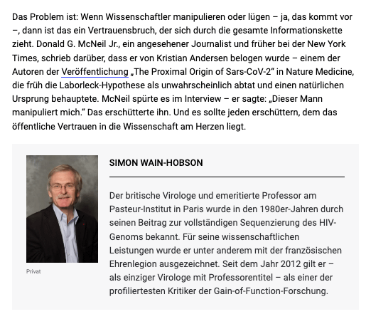 "Yes. Assuredly. And also the Lancet letter [..]. These pieces were not true scientific products. They served a narative and did not expose the data.