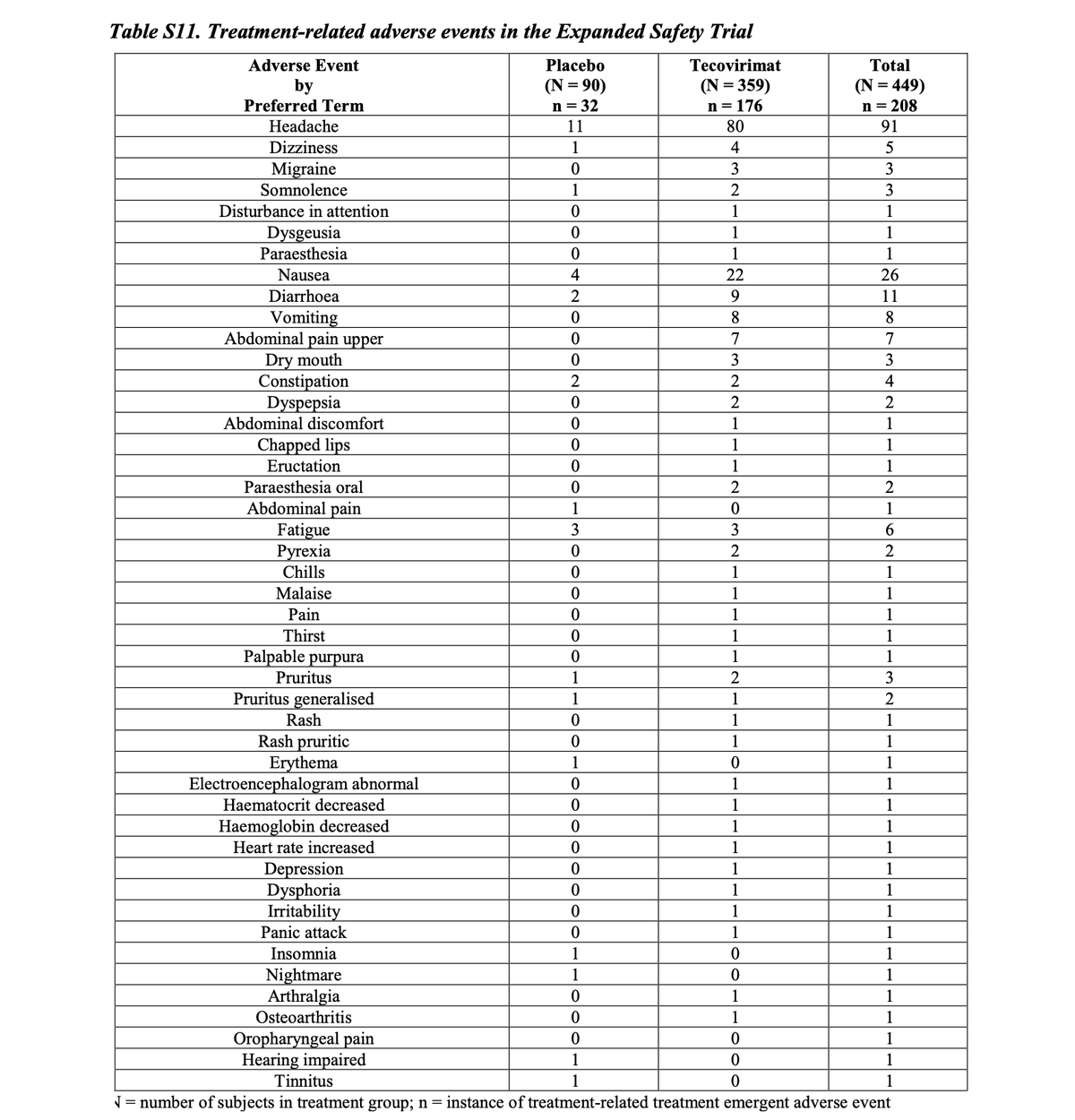 (And lest I be called out: it's also because TPOXX appears to be very safe and well-tolerated.) Main side effect in the TPOXX trial? Nausea, which is an extremely common side effect of many drugs, and usually easy to manage. Here's the list: