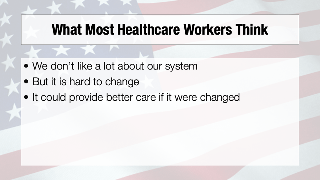 First off: It is not good when 1 in 5 doctors in your country does not trust the healthcare system that they themselves work in. We are pretty aware of how the sausage is made. If we don't trust our own system, the one that we "control"...