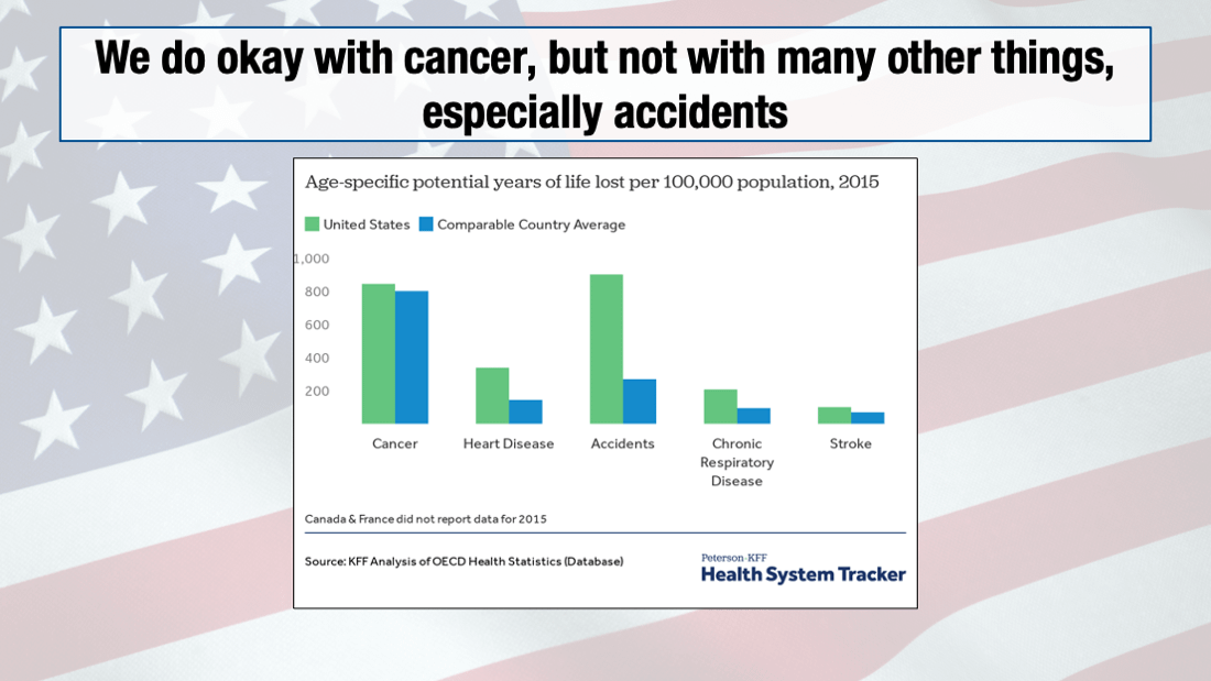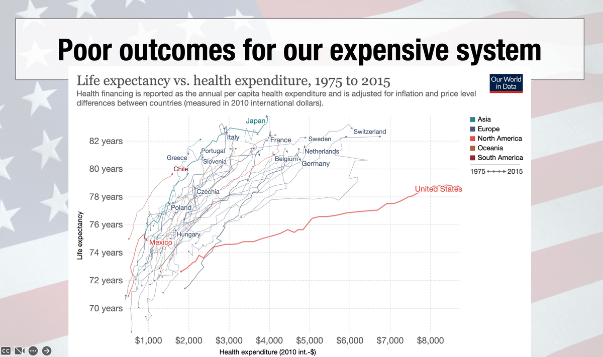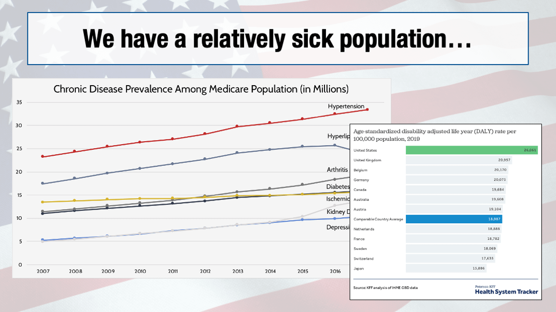 🇺🇸Back to the US. Part of the reason we're expensive is that our people have lots of disease. Hypertension, diabetes, heart&kidney disease. Americans are winning... at living lives WITH disease/disability than by most other countries. (Some of this is under our control, too.)