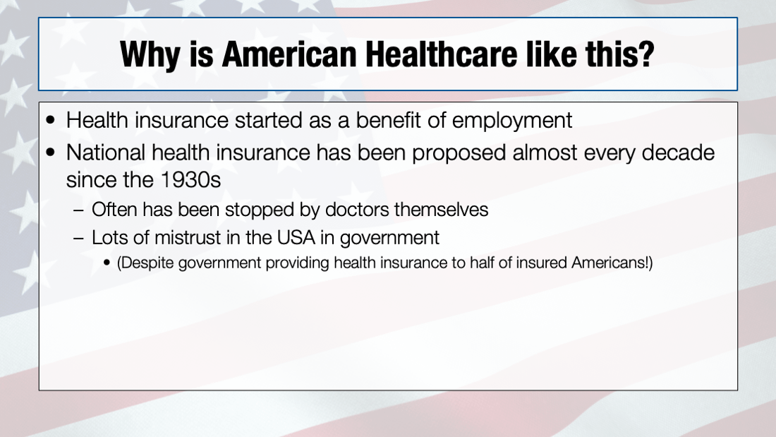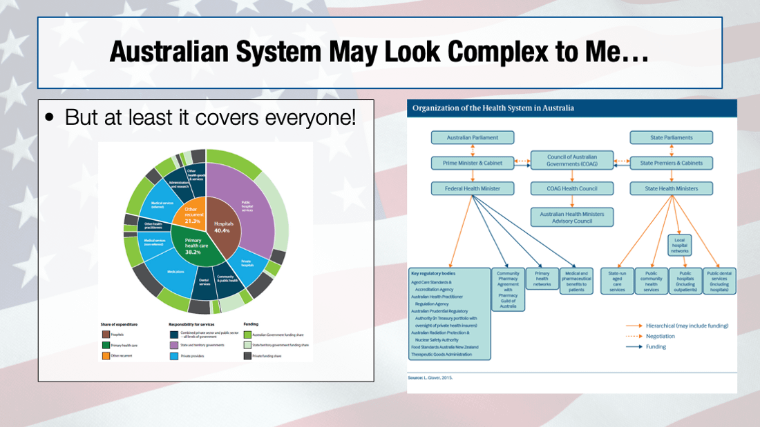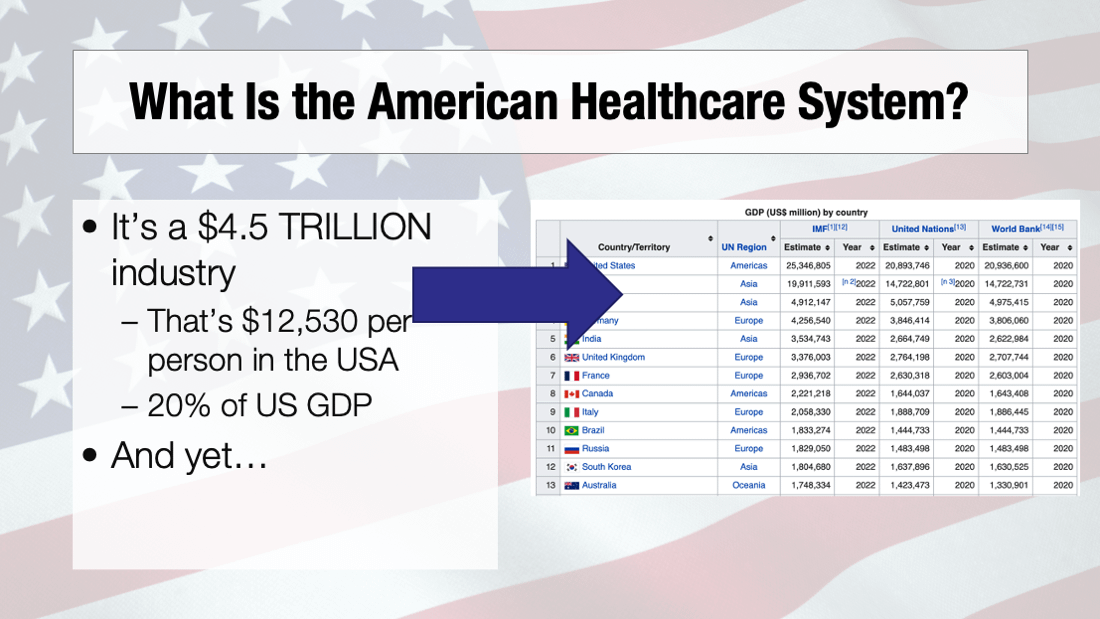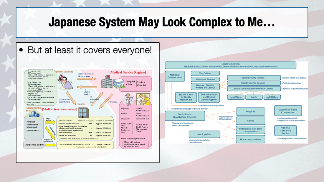 Recently I lectured in Tokyo and Sydney about the American healthcare system. I was not proud to stand up in front of fellow ER doctors and say "So, here's how things operate in the US, and here are our outcomes to show for it." Below are my slides.