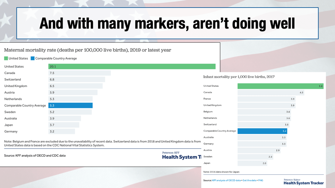 This slide is an abomination. While we're fighting about abortion in this country, our pregnant mothers have a 400% higher risk of dying than other developed countries. And our babies have a 70% higher risk of dying in the first year of their life. Before their first. Birthday.