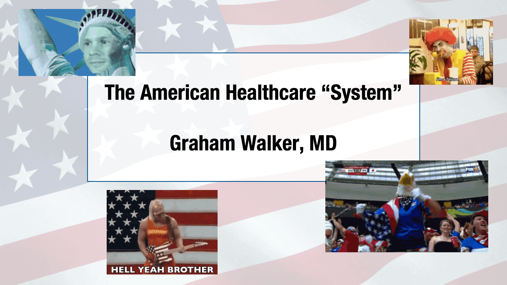(Slides emphasizing to the audience, "Hey it could be worse, I could live and practice medicine and get care in America")