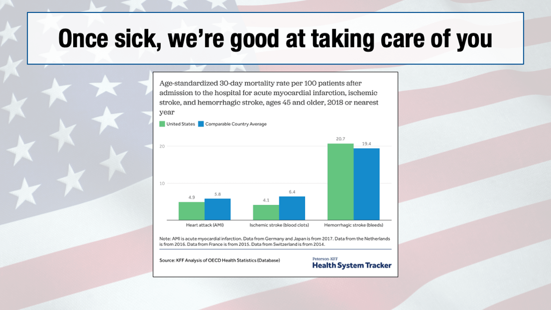 Once you get REALLY sick — sick enough for a heart attack, or require surgery, or have a stroke — the US healthcare system will full-throttle take pretty good care of you! I will see you in the ER and call a cardiologist at any time of day or night to come fix your heart attack!