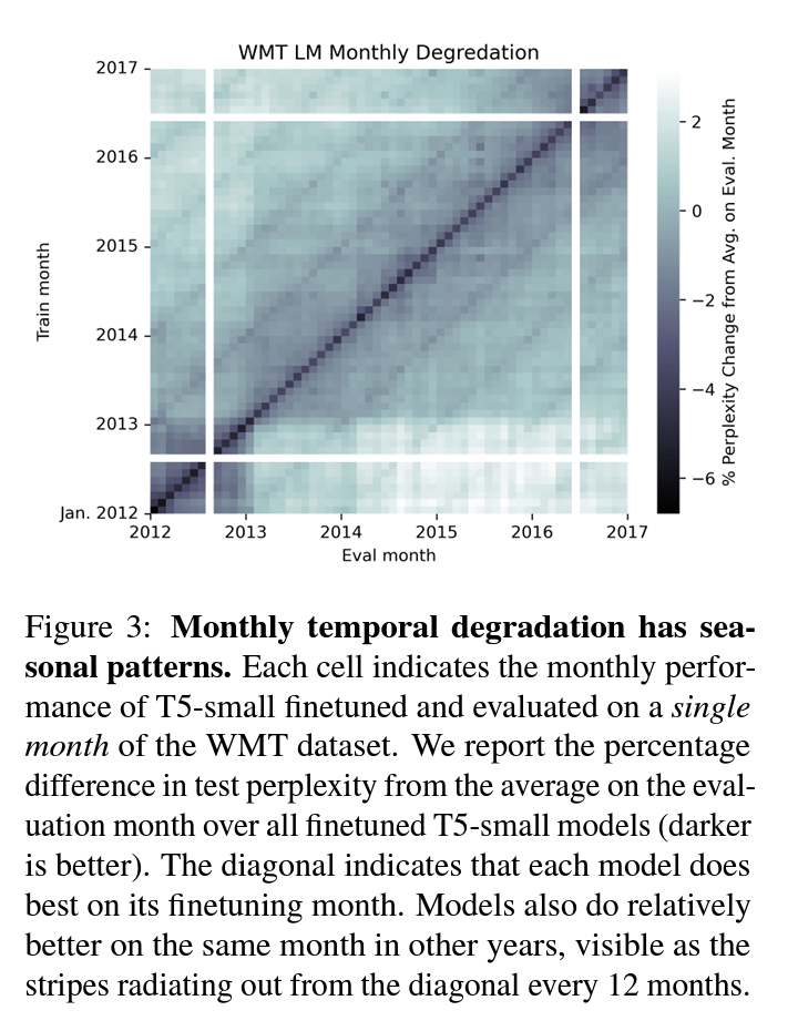 What's also interesting is that performance degrades somewhat linearly as you move away in time from the training data.