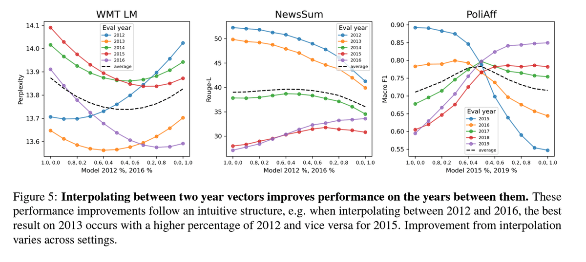 This is where it gets even more interesting: Once you have the vectors, you can interpolate between them to get better performance on years that you didn't finetune!