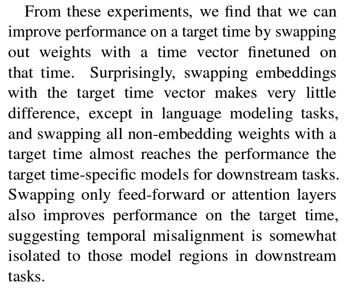 1. This work is done on standard pretrained models (three sizes of T5). If we start training models with constraints that force better clustering of concepts and time in the latent space, likely this approach will lead stronger results.