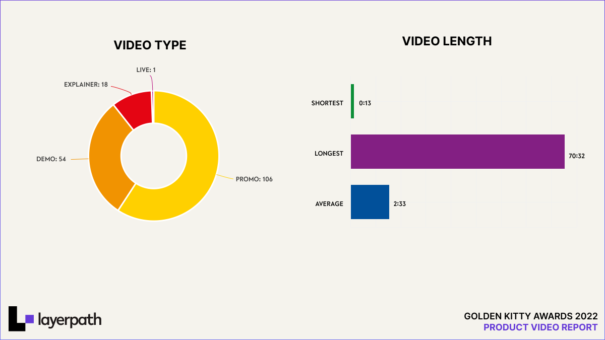 I'm building @layerpath to help teams craft awesome product videos - so I took the time to check out 300+ Golden Kitty Awards 2022 nominees with video on their launch page. Check it out: