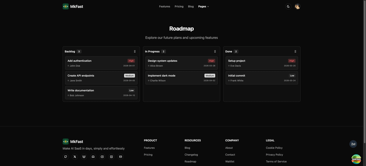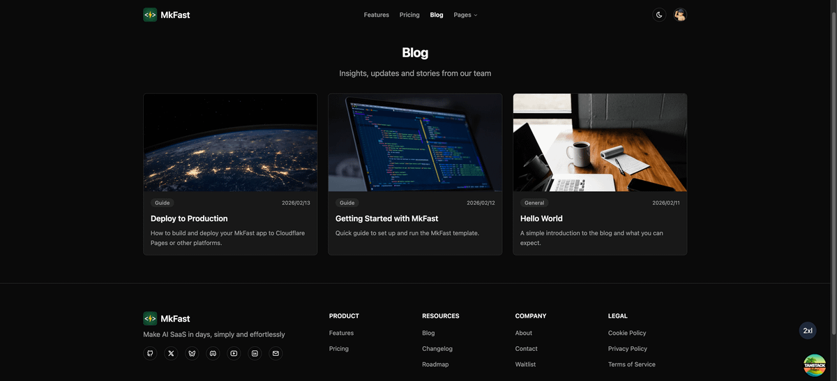 🎉 20260221进展:MkFast模板已完成90% 不论是界面,还是功能,完全对齐MkSaaS模板 🥳 不一样的是使用了Tanstack start+BaseUI+深度集成Cloudflare 并且不会支持国际化、docs模块、积分制等,轻装上阵