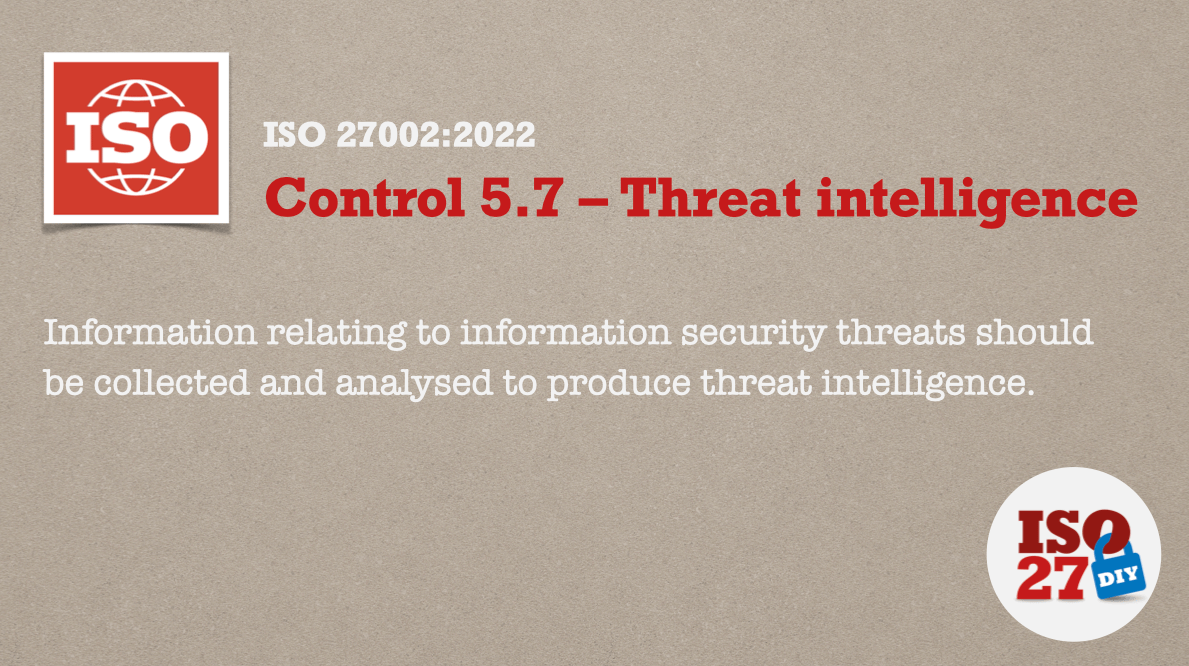 All in all, ISO 27002:2022 A 5.7 brings together #threatintel elements that were previously spread over controls related to network applications, secure systems engineering, mobile devices and wifi usage, #infosec policies, and special interest groups – and expands upon them.