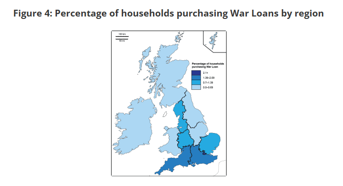 התפלגות הרוכשים על פני המדינה כולה הייתה גם היא לא בדיוק העידה על "התגייסות כוללת" - מרבית הרוכשים הגיעו מהאיזורים העשירים של בריטיניה (בעיקר לונדון) ומיעוט מיתר האיזורים העניים יותר. בנוסף, מרבית הרוכשים קנו אג"ח בסכומים קטנים יחסית של 100-200 ליש"ט.