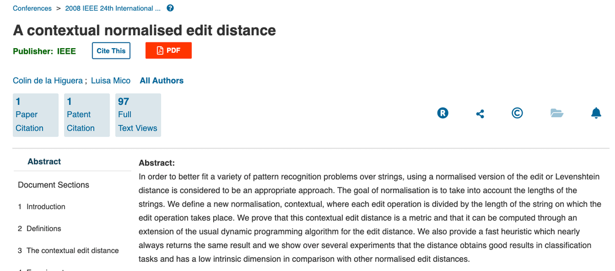 17/ Edit distance (ED) is a way to quantify how dissimilar two strings are. It counts the minimum number of operations that are required to transform one string to the other. This is useful in many applications such as spell checking, DNA analysis, & malware naming.