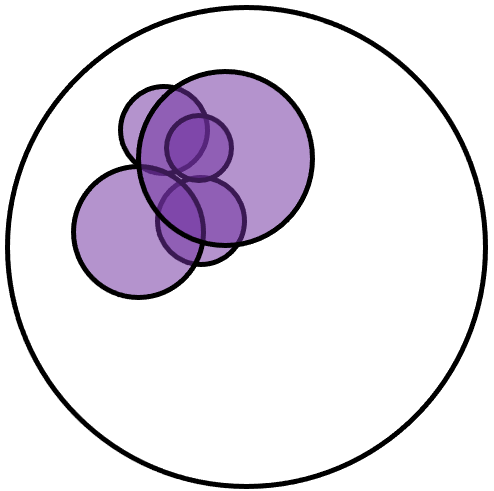 7/ Consider these images. Imagine that the outer circle represents the scope of possible iterations for a behavior & the purple circles represent our test coverage. Both include the exact same five purple circles, yet we can see a substantial difference in overall coverage.