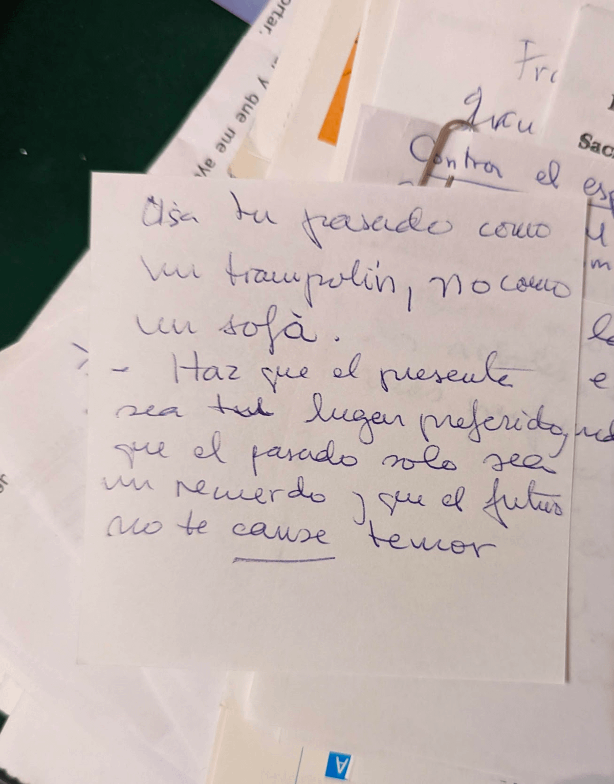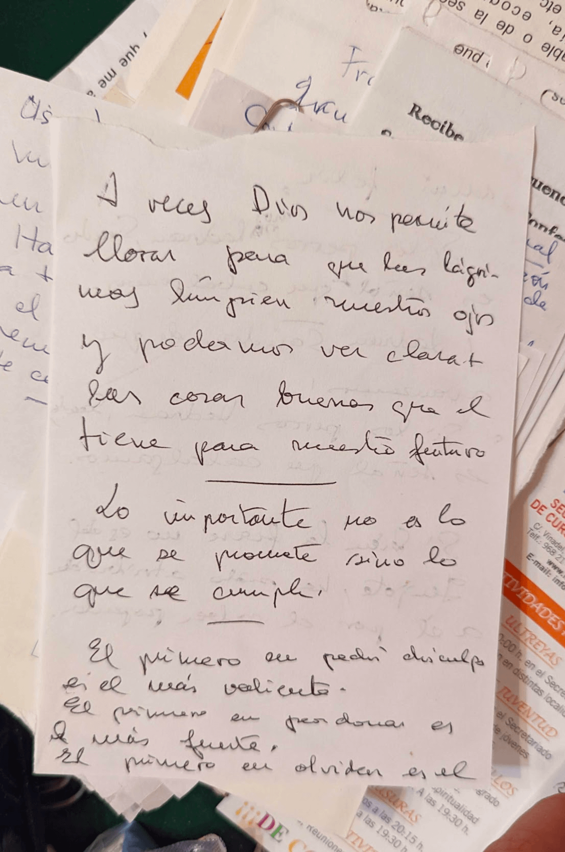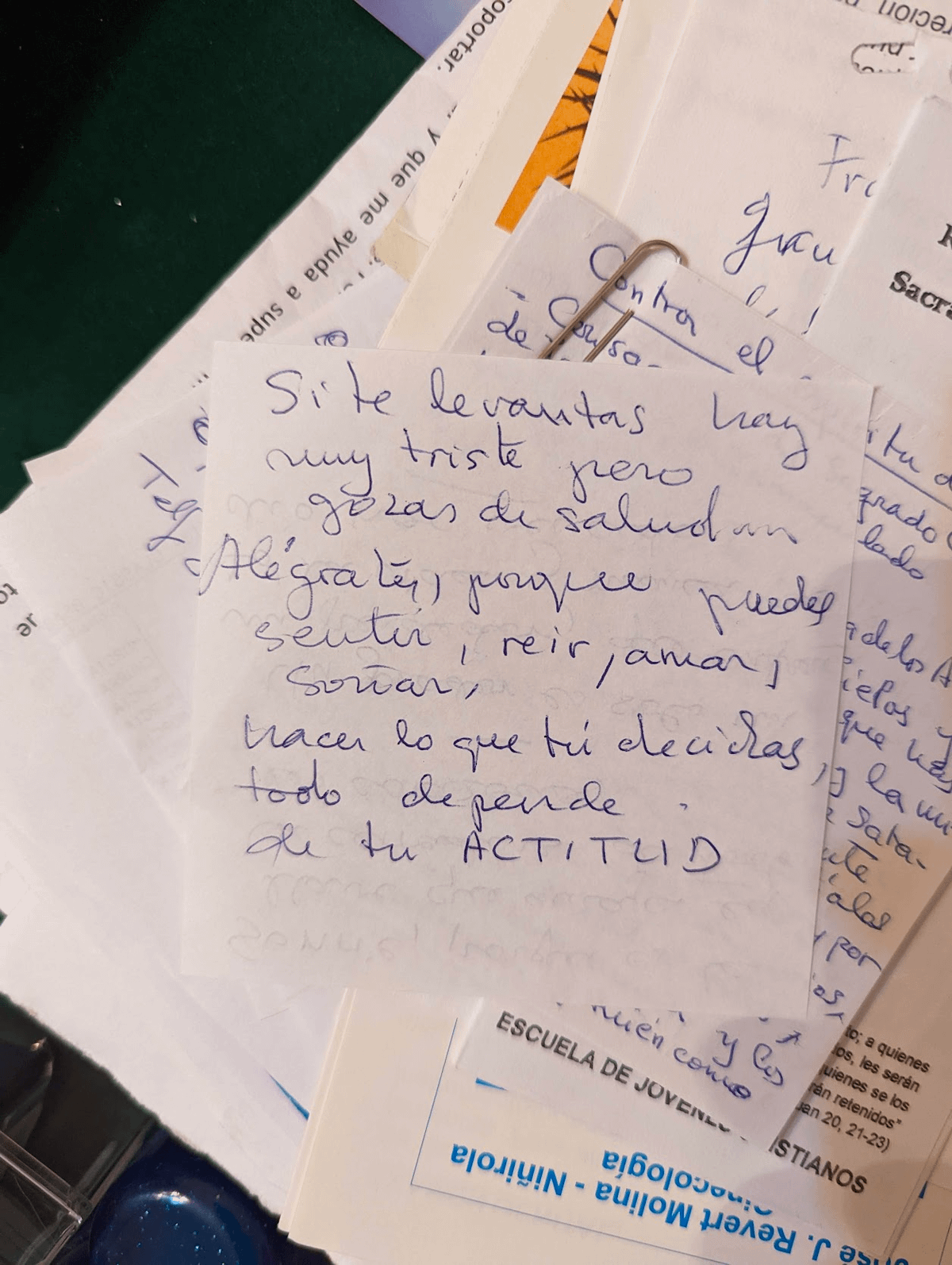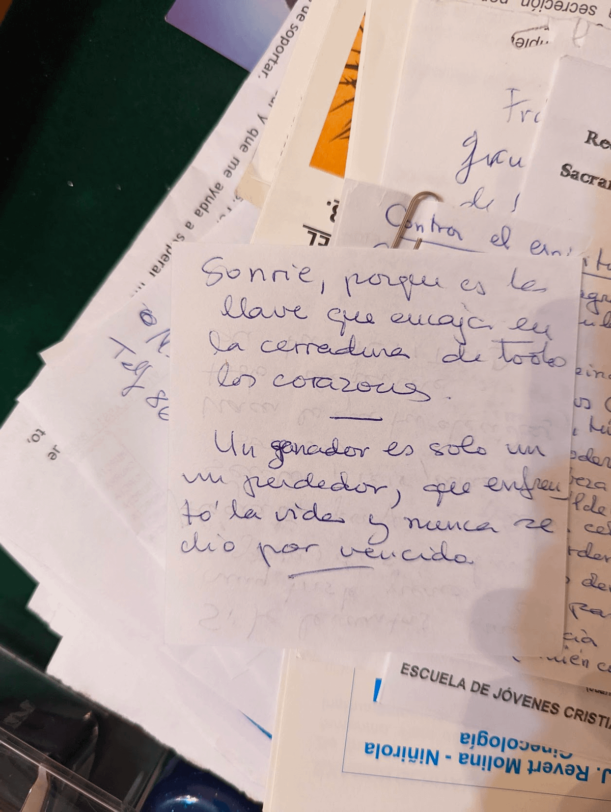 Y le gustaba rodearse de notitas que ponía por la casa, llenas siempre de optimismo.