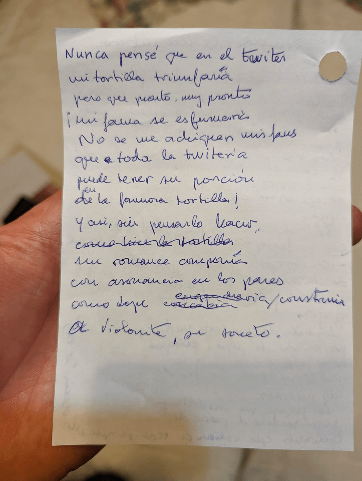 Se puso muy contenta por cierto con la fama que alcanzó su tortilla de patatas en Twitter e incluso escribió un poema.