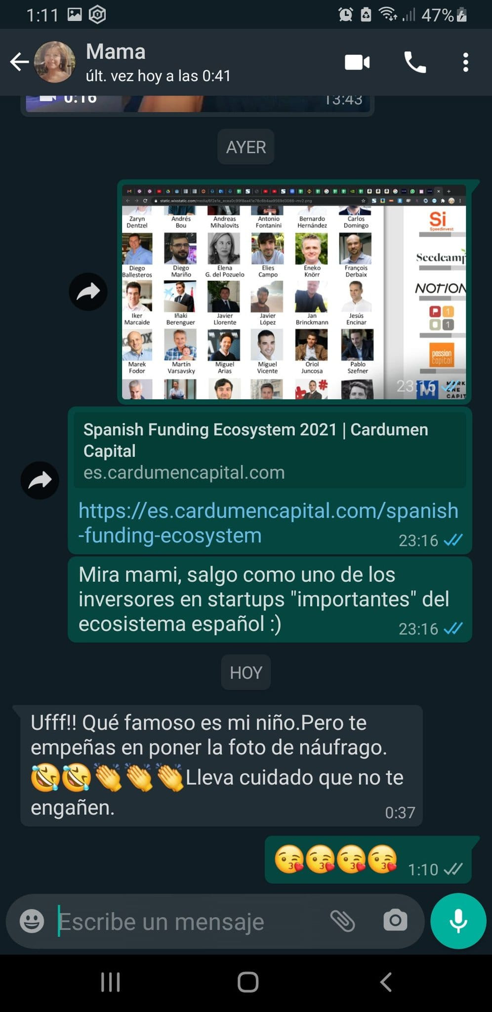 En ocasiones, mi madre me hacía reír incluso sin pretenderlo. Yo, como ella, soy de guardar recuerdos, notas, detalles y... capturas de pantalla.