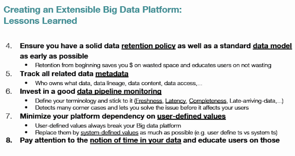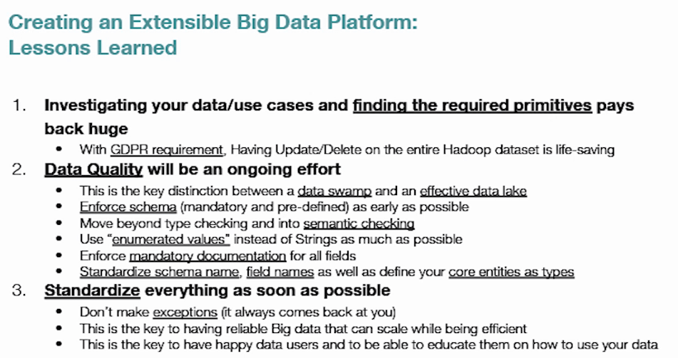 But, above all, the "lessons learned" slides have some great advice (enforce schema!) that will last for decades.