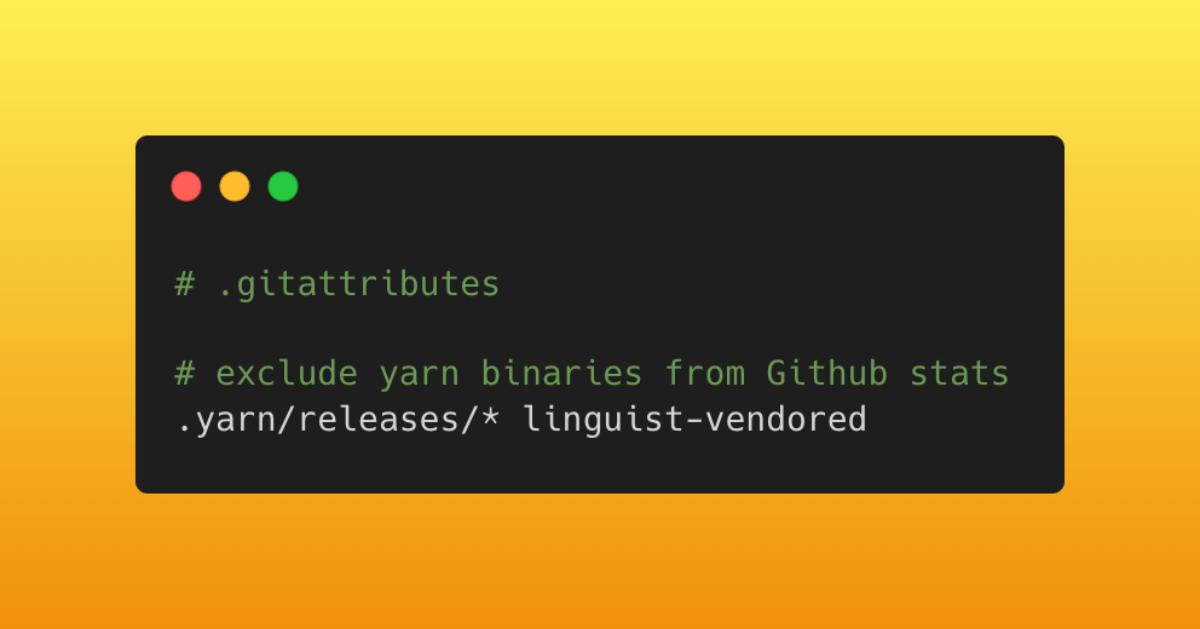 Also a little small tip โ if you don't want yarn binary (which should be versioned in ".yarn/releases" โ jukben.codes/one-yarn-to-rule-them-all) to skew your Github stats you can override it in ".gitattributes" like this. ๐