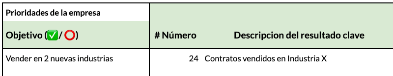 Resultado clave: 24 nuevos clientes de Industria X (2 nuevos por semana)