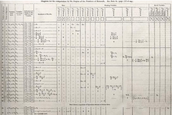 Ada tomó los números de Bernoulli (una sucesión de cifras infinitas) y en un diagrama detalló que operaciones debía de realizar la máquina analítica para calcularlos.