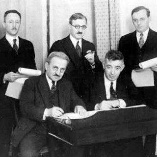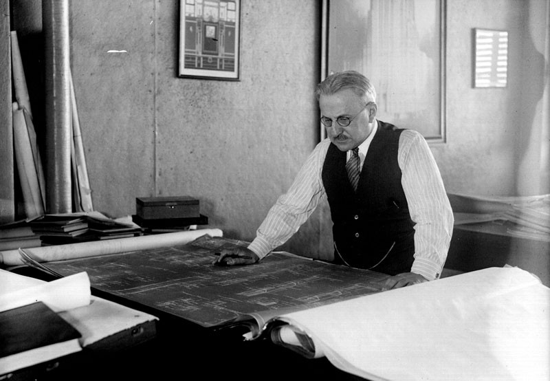 As the head of Amtorg, Saul Bron would personally look for and choose American partners who would help with the Soviet industrialization. One of Bron's first findings was a Detroit industrial architect Albert Kahn - here you see them signing a contract