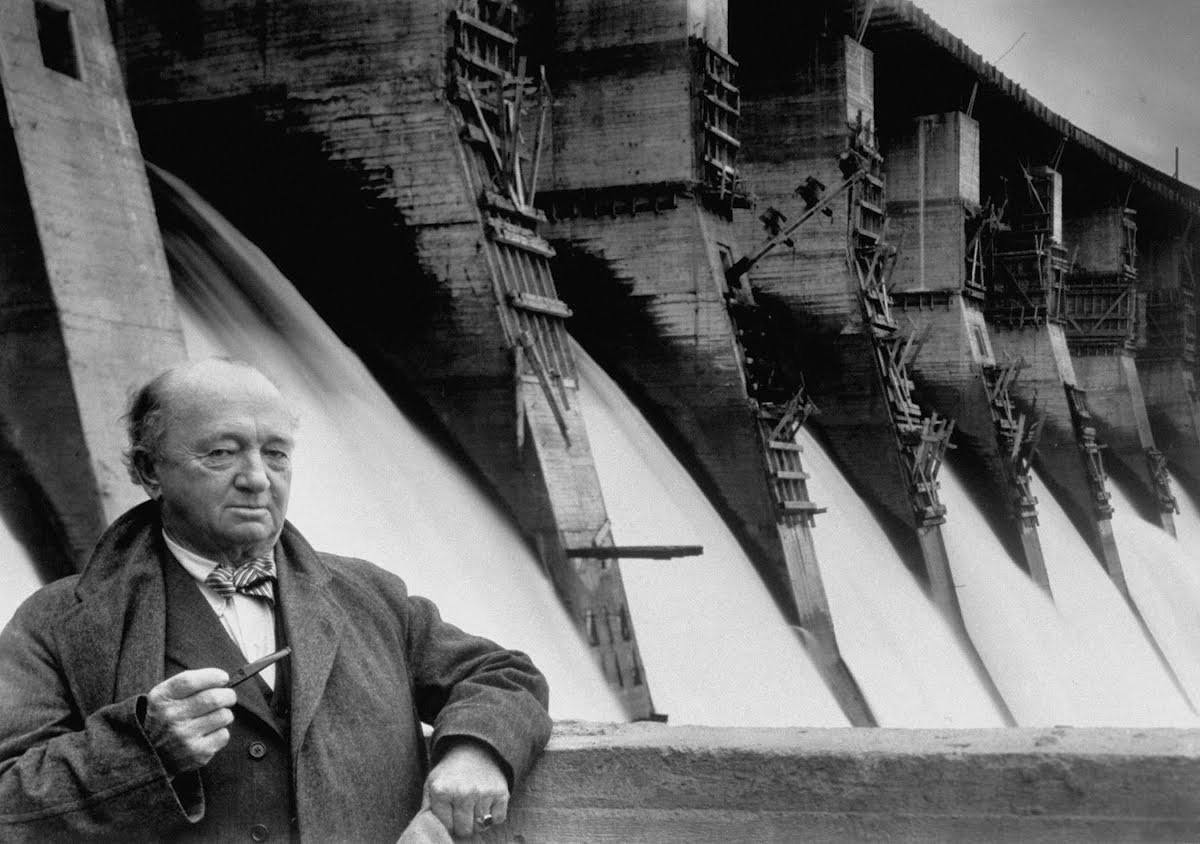 Here you see a Colonel Hugh Lincoln Cooper, of the US Army Corps of Engineers, standing in from of the greatest construction project of Stalin - Dnieproges hydrolectric dam. Colonel Cooper was its chief construction consultant, supervising the entire process
