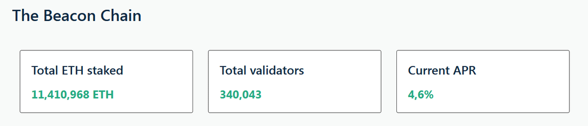 Currently there is 11.4M $ETH staked, earning 4.6% APR. This ETH-denominated yield comes only from the staking rewards.