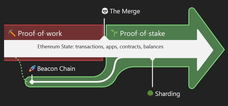 The Merge is a switch from Proof-of-work (PoW) to Proof-of-stake (PoS) consensus on the Ethereum blockchain.