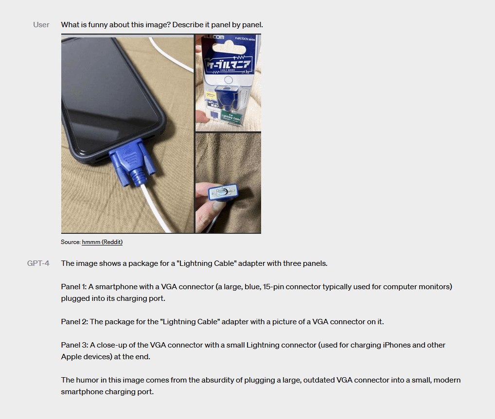 GPT-4 is not only "smarter" than its predecessor. It can also accept VISUAL inputs! Let it sink in: it basically understands images!