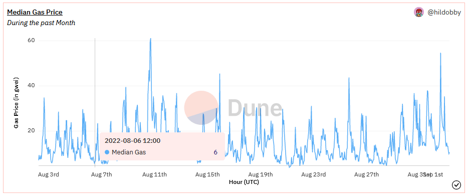 I can see the bottom on gas price chart at ~5-7 GWEI.