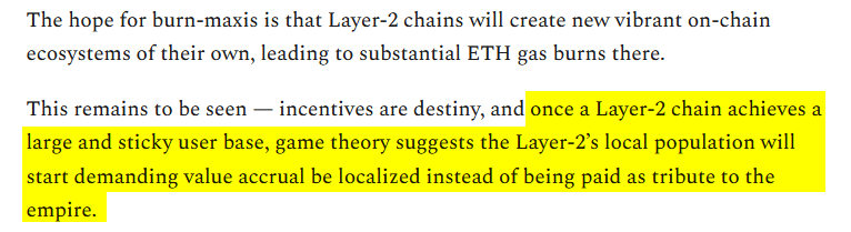 L2s inherit security from Ethereum, therefore, don't need to issue their token to pay for it as all other L1s.