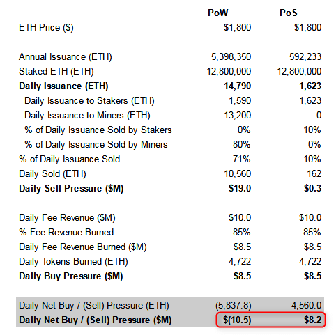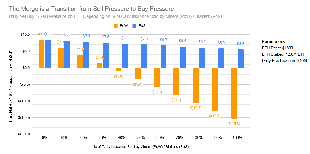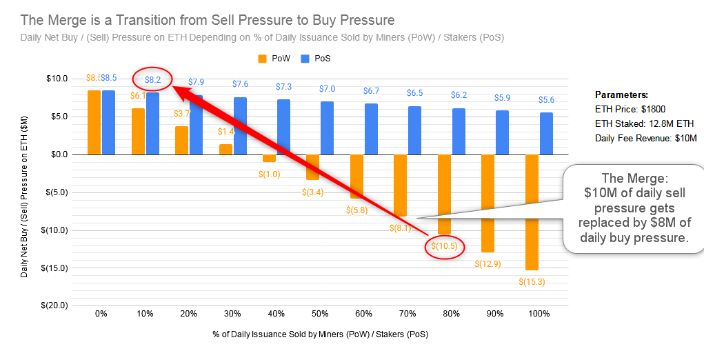 If The Merge happened today, ~$10M of daily sell pressure on $ETH would be replaced by ~$8M of buy pressure.