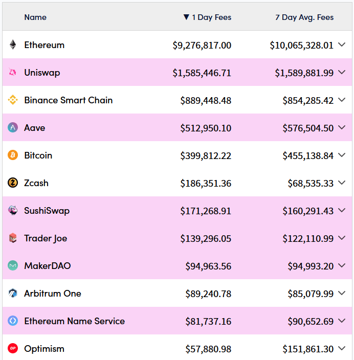 Daily Fee Revenue varies depending on the activity on Ethereum (manifested in gas fees). The daily average based on last 7 days is about $10M.
