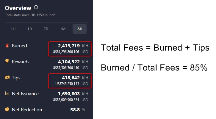 Therefore, a portion of total fees that gets burned is equivalent to new money flowing into a system.