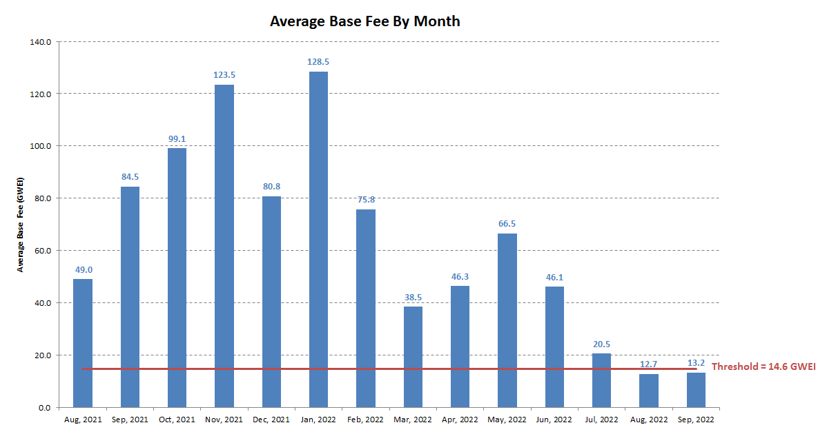 Base Fee should be at least 14.6 GWEI on average to offset the Proof-of-Stake issuance.