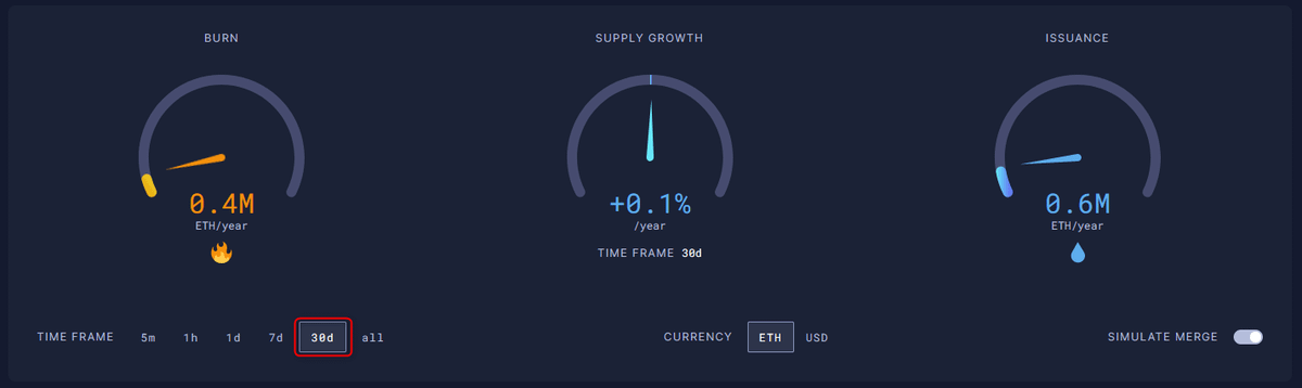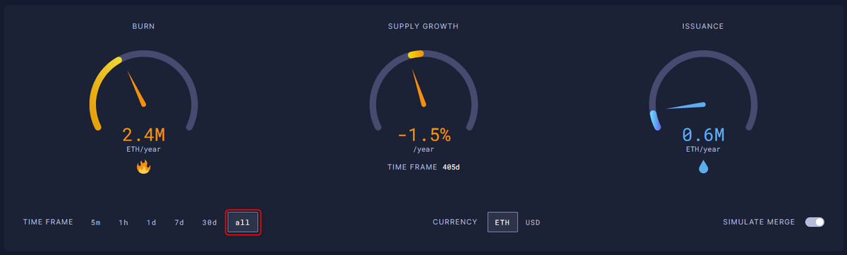 If we included the whole history of ETH burn, projected supply growth would be negative at -1.5%.
