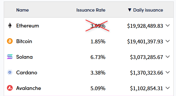 Even in the most inflationary scenarios ETH has lower inflation than other coins.