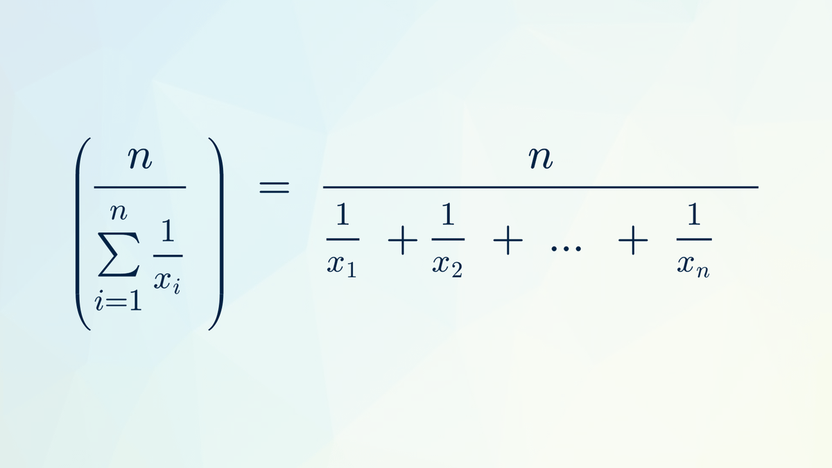 Calculated as the number of values N divided by the sum of the reciprocal of the values.