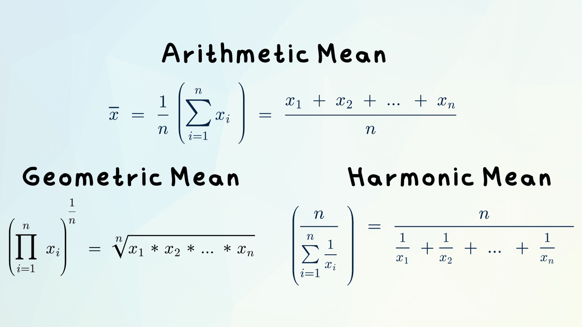 An introduction to the arithmetic, geometric, and harmonic mean.