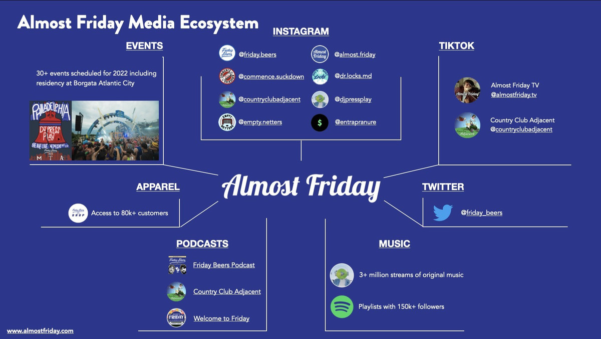 In sum, it's a full suite of perks and experiences to help people who live the Friday Beers lifestyle feel good.
