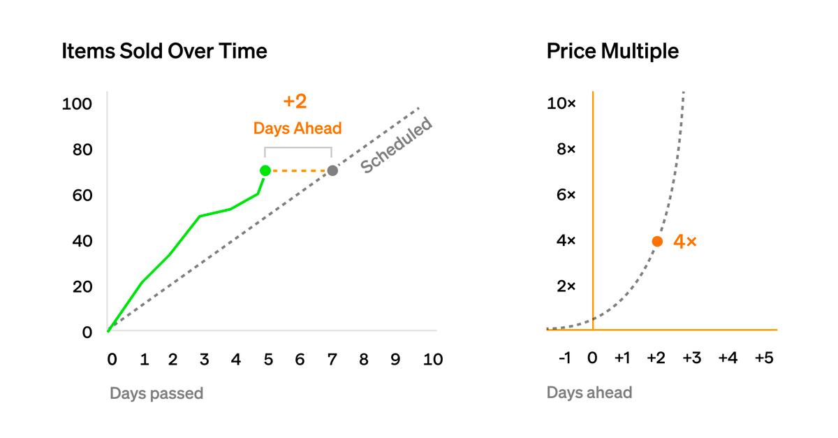 Prices automatically rise when sales are ahead of schedule and lower when sales are behind.